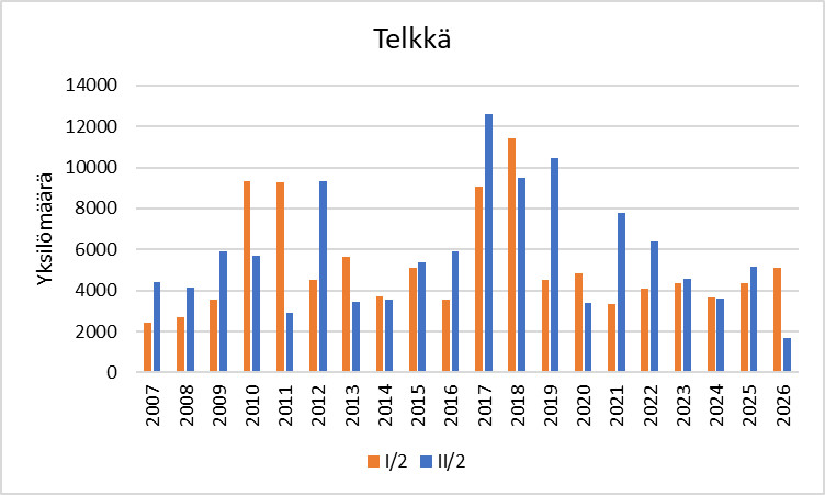 Telkän runsaus* 1.–10.2. ja 11.–20.2. vuosina 2007–2026