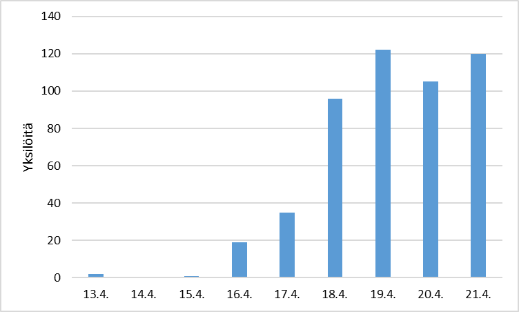 Räystäspääskyjä havaittiin 21.4. mennessä yli 700 yksilöä, pohjoisin Valassaarilla. Määrä on kymmenkertainen vuosien 2007–2024 parhaaseen summaan (kevät 2013) verrattuna.