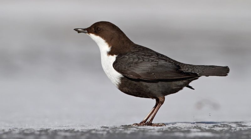Ulkonäkö: Pääosin tummanruskea, mutta kurkku ja rinta laajalti valkoinen. Palleromainen ja melko lyhytpyrstöinen. Niiailee hermostuneen tuntuisesti ja sukeltaa kokonaan veteen.