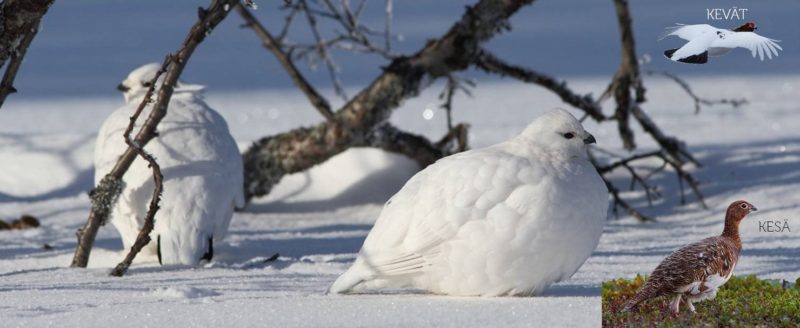 Ulkonäkö: Talvella kokonaan valkoinen mustia pyrstösulkia lukuun ottamatta, kesällä siivet valkeat ja muuten punaruskea.