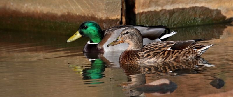 Ulkonäkö: Koiraalla juhlapuvussa sinivihreä pää ja keltainen nokka, kapea valkoinen kauluri ja tummanruskea rinta. Naaras ruskeankirjava.