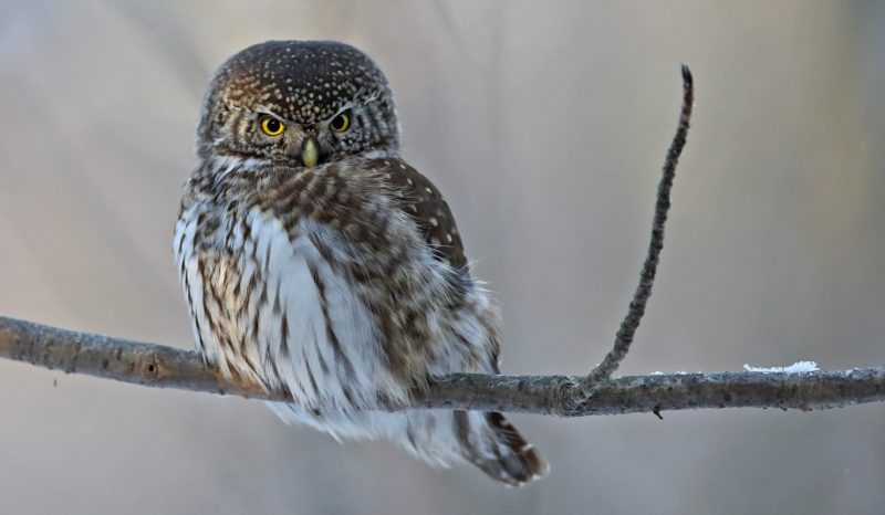 Koko: Noin 17 cm, pienin pöllömme, pienempi kuin kottarainen.