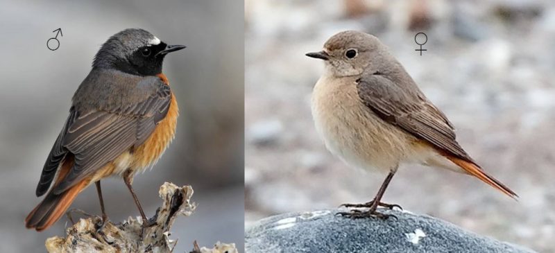 Ulkonäkö: Pääosin synkänruskea, mutta vatsapuolella, siivillä ja pitkässä pyrstössä oranssinpunaista.