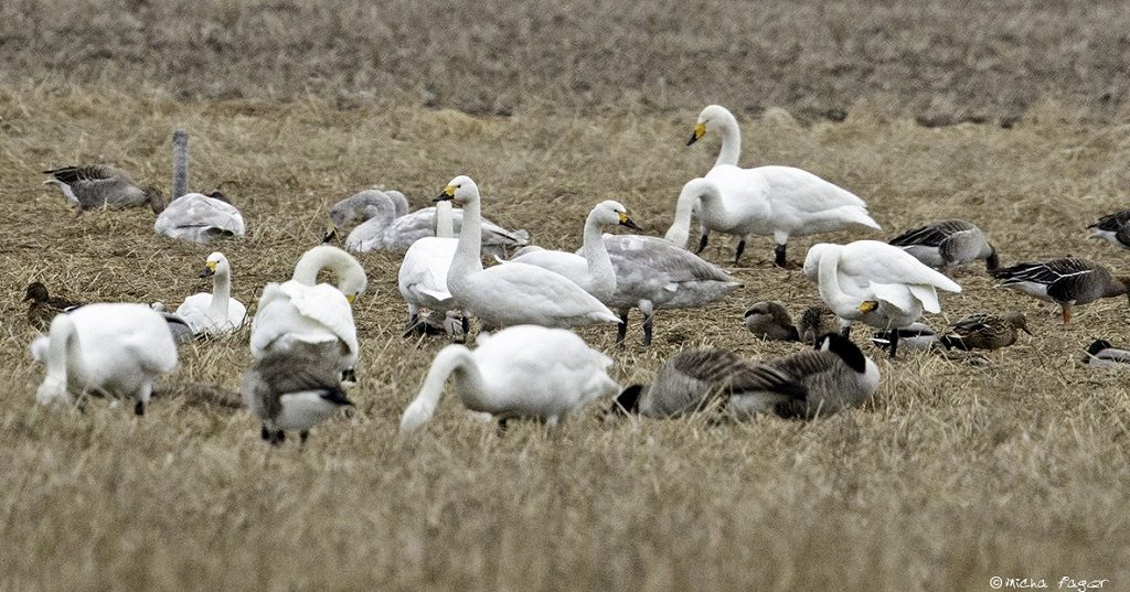 Hanhien lisäksi joutsenia näkee nyt suurin parvin. Vaasan Söderfjärdenillä laskettiin tänään yli 1 100 joutsenta. Satoja joutsenia lepäilee myös Porin seudulla. Tarkkasilmäinen voi löytää joutsen- ja hanhiparvista pikkujoutsenia ja lyhytnokkahanhia. Tundrahanhia voi nähdä jo kymmenittäin.