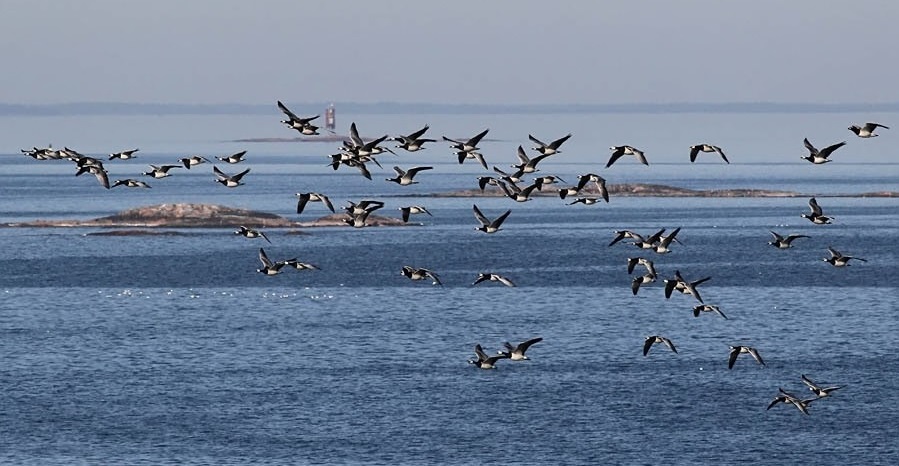 Arktisten hanhien ja vesilintujen muutto huipentui viime viikolla. Ikimuistoinen päivä koettiin keskiviikkona, jolloin sadattuhannet valkoposkihanhet muuttivat leveällä rintamalla. Porvoon Söderskärillä laskettiin päivän aikana noin 370 000 hanhea, mikä lienee uusi yhdeltä paikalta laskettujen hanhien Suomen ennätys. Suurin osa määritetyistä hanhista oli valkoposkihanhia, joskin joukossa muutti pieniä määriä tundra-, metsä- ja sepelhanhia. Keskiviikko oli muutenkin monipuolinen päivä. Pienempiä vesilintuja – lähinnä alleja ja mustalintuja – muutti noin 450 000 ja kuikkia sekä määrittämättömiä kuikkalintuja noin 2 700.