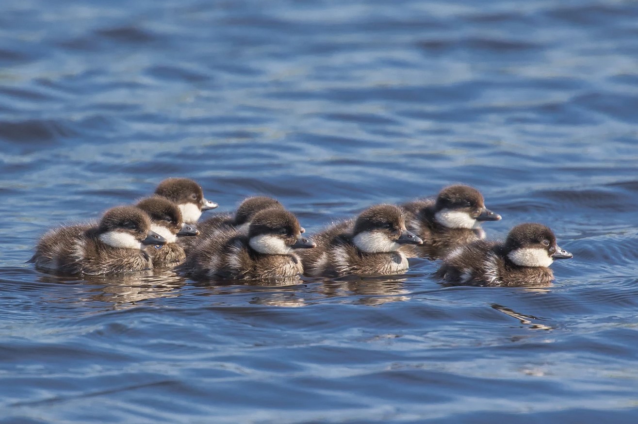 Samaan aikaan varhain muuttavilla lajeilla pesinnät ovat jo pitkällä. Rastaat ja punarinnat laulavat nyt vain harvakseltaan ja keskittyvät haudontaan ja pesäpoikasten ruokkimiseen. Monet sinisorsat, telkät ja merihanhet uittavat jo untuvikkojaan.