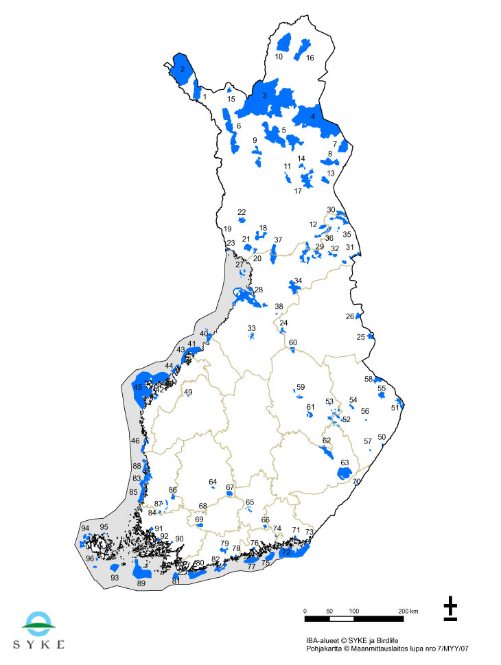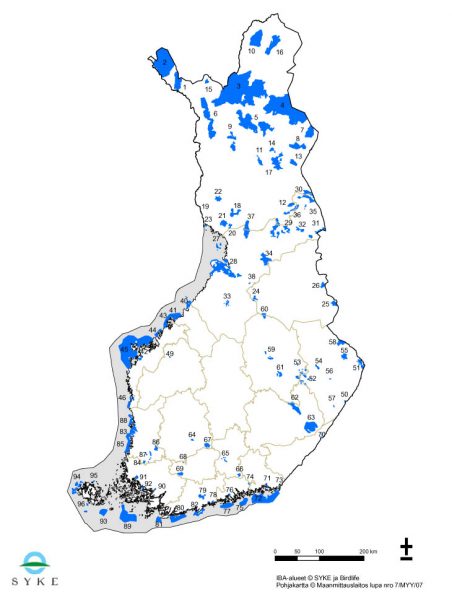 IBA-alueet maakunnittain ovat: