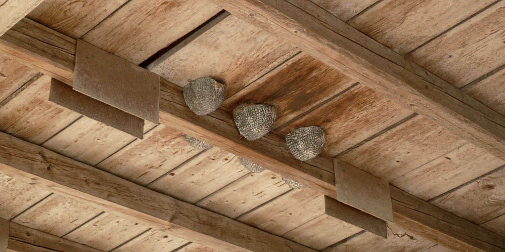Räystäspääskylle ulkoseinustoille asennetut pesänaluslaudat eivät ole kovin tärkeitä, koska se rakentaa pesänsä yleensä pystyseinään ilman mitään alapuolista tukea.