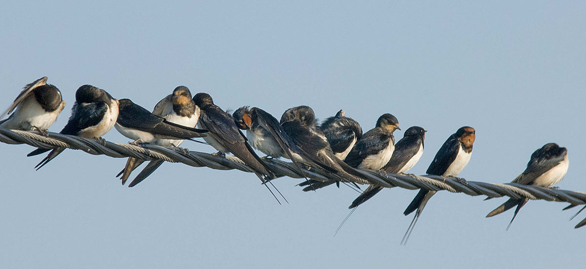 Haarapääskyjä valmistautumassa syysmuuttomatkalle. Kuva: Mauri Leivo.
