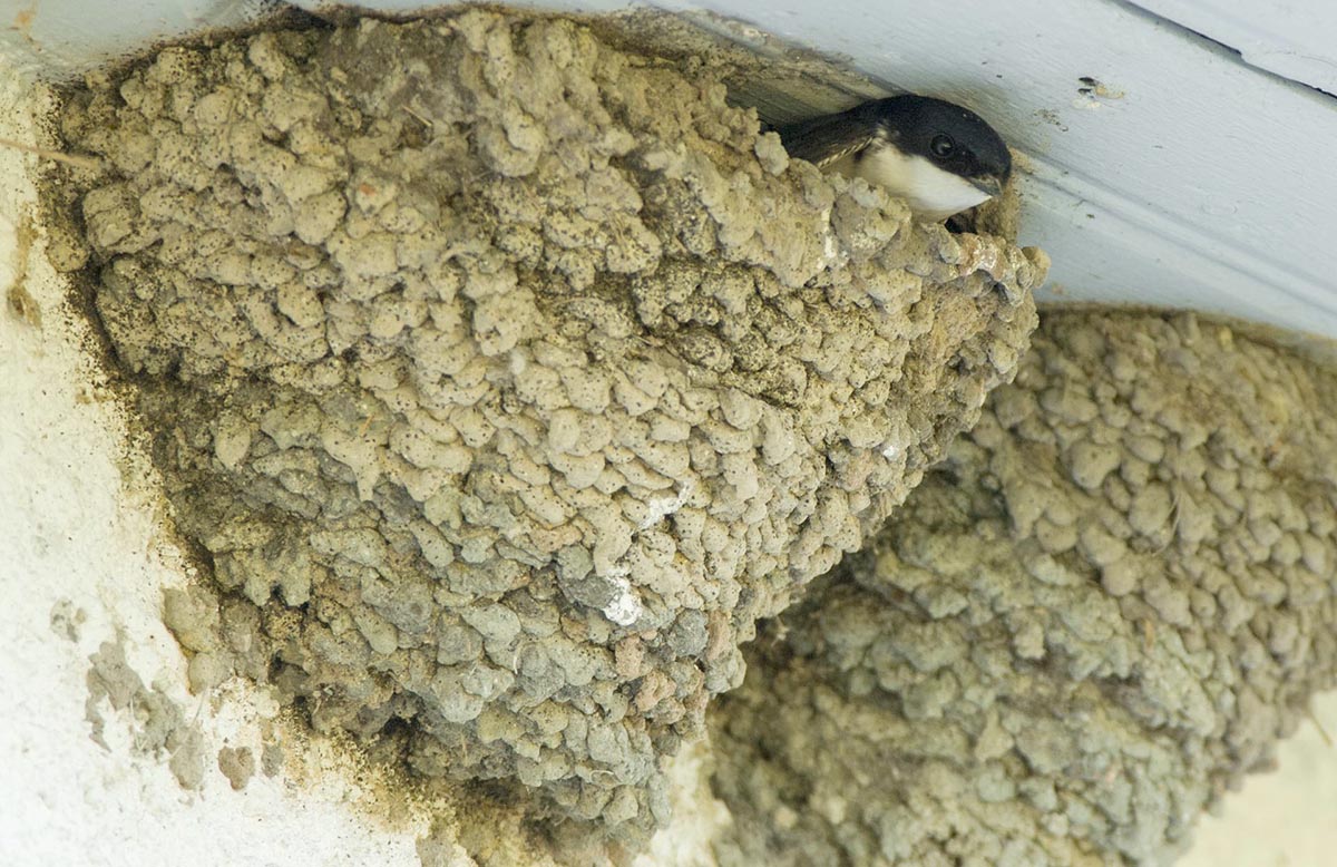 Räystäspääsky ei läheskään aina rakenna uutta pesää, vaan kelpuuttaa pesäpaikakseen myös edellisvuotisen pesän sekä tekopesän.