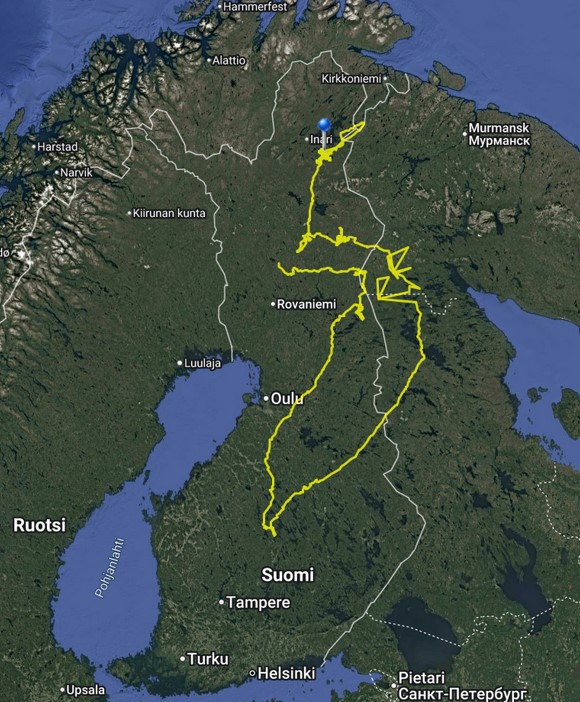 Liikkuvainen Oleg vietti kesänsä neljän valtakunnan alueella niin Ruotsissa, Norjassa kuin Venäjälläkin vieraillen. Vaikka lintu viihtyikin pääosin napapiirin pohjoispuolella, heinäkuun puolivälissä oli vuorossa pitkä maakuntamatka aina Keski-Suomen pohjoisosiin asti. Syksyn kynnyksellä Oleg näyttää hieman rauhoittuneen ja asettuneen pitkäksi aikaa Ivalon seudulle.