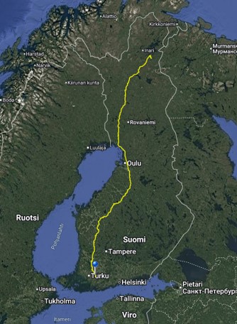 Kiirettä Jykä ei ole pitänyt: neljässä päivässä matkaa taittui noin 400 kilometriä. Mikäli suotuisat muuttosäät jatkuvat, tällä tahdilla ehditään juuri ja juuri viikonlopuksi kotiin.