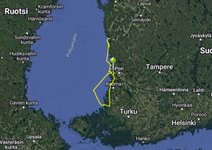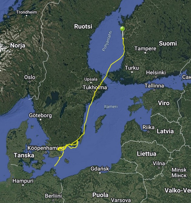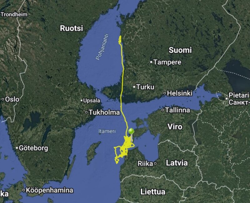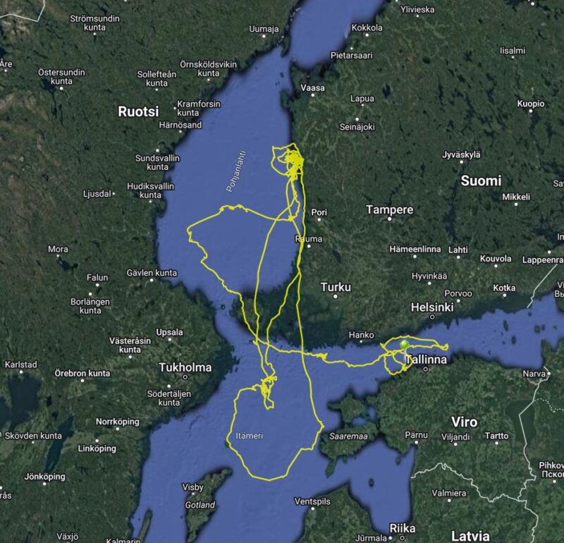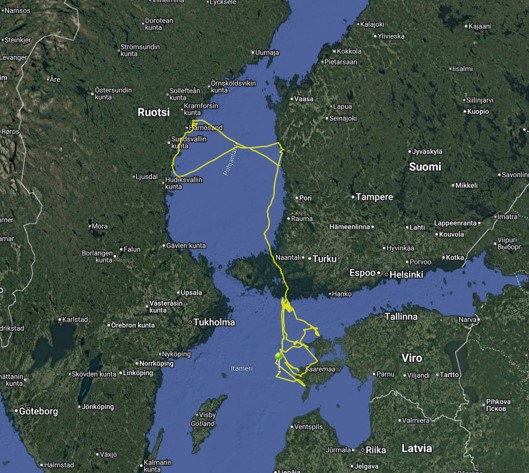 Myös Achilles on saapunut Suomeen! Pohjoisvirtaus pidätteli seurantalokkia viikon päivät eteläisellä Itämerellä, mutta tuulen käännyttyä Achilles lähti jälleen liikkeelle 27.4. aamulla ja saapui pesimäpaikalleen 28.4.