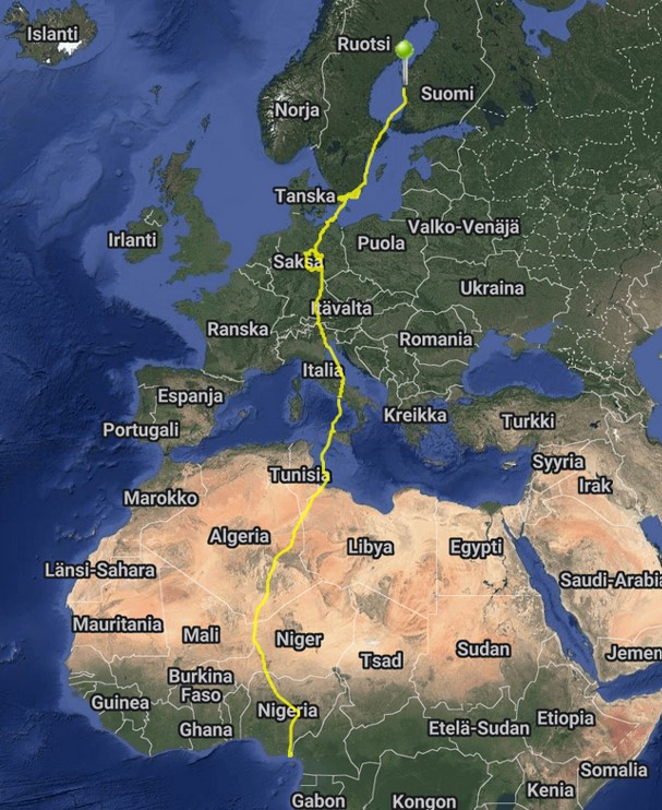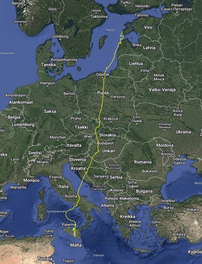 Achilles on aloittanut matkansa kohti päiväntasaajan seutuja. Muutto kulki Itämereltä varsin suoraviivaisesti Keski-Euroopan yli, ja nyt lokki on asettunut Sisilian ympäristöön. Viekö tämä reitti ehkä kohti Guineanlahtea?