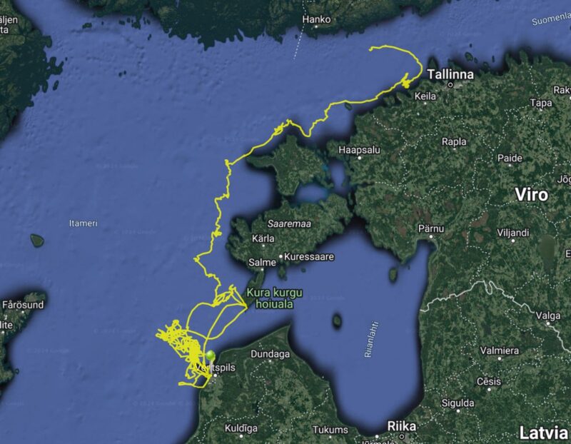 Achillesilla ei ole vielä kiire kohti talvehtimisalueitaan. Viimeisen kahden viikon aikana matka on edennyt Baltian rannikkoa seuraten Latviaan, missä tukikohtia on löytynyt niin satamista kuin hiekkarannoiltakin. Kalastusmatkat vievät kauas ulkomerelle.