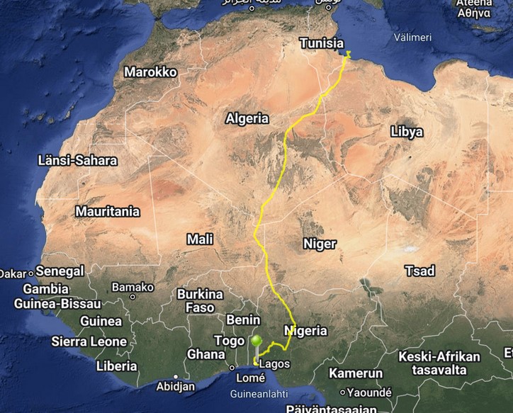 Myös Achilles muutti Guineanlahdelle! Rengaslöytöjen perusteella suomalaisten selkälokkien talvehtimisalueet painottuvat itäiseen Afrikkaan, mutta viidestä seurantalokistamme jo kaksi onkin päätynyt mantereen länsipuolelle. Achillesin Saharan ylitys kesti kauan, sillä Libyan rannikolta se lähti jo 28.9. ja saapui Nigerian rannoille vasta 6.10. Nyt Achilles viihtyy aivan pääkaupunki Lagosin kupeessa sijaitsevalla laguunilla.