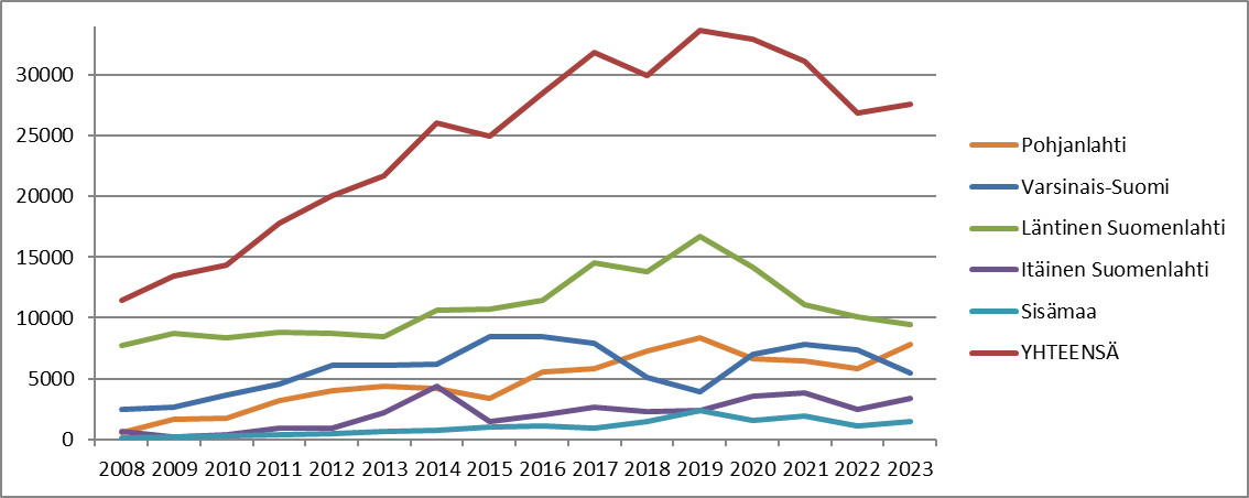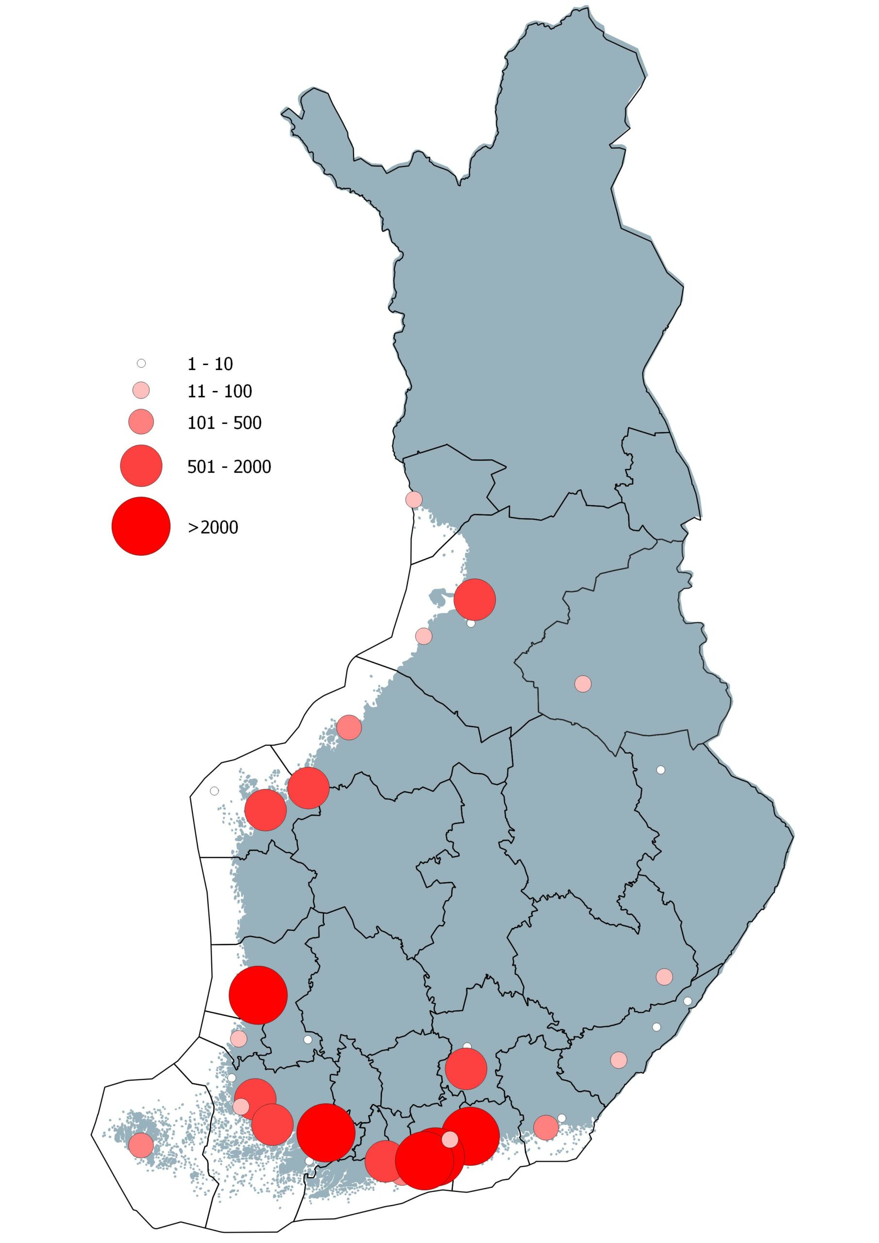Kymenlaakson rannikolla valkoposkihanhia havaittiin harvinaisen vähän, mutta Porvoon seudun määrät olivat hyvää tasoa. Suomenlahdella pesivät linnut siirtyvät loppukesällä tyypillisesti länteen päin, ja loppukesän hanhimäärät itäisillä pesimäalueilla vaihtelevat suuresti.