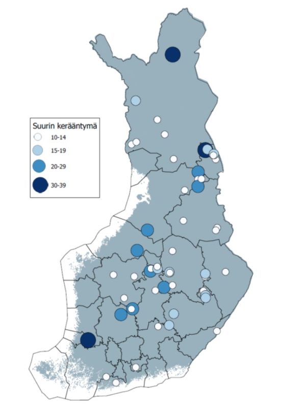 Suurimmat talviaikaiset koskikarakerääntymät 2010-luvulla.
