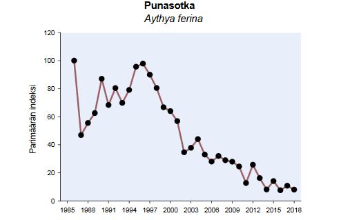 - Laaksonen, T., Lehikoinen, A., Pöysä, H., Sirkä, P. & Ikonen, K. 2019: Suomen sisävesien vesilintujen kannanvaihtelut 1986–2018. – Linnut‑vuosikirja 2018: 46–55.