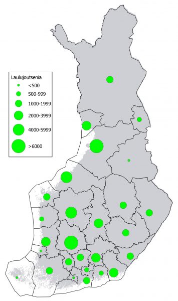 ![]() Laulujoutsenten määrät alueyhdistyksittäin. |
