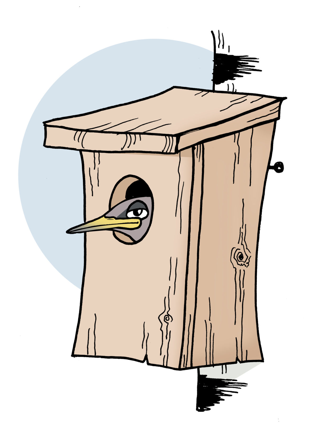 • Det hörs ljud av fågelungar från ett bo eller en holk