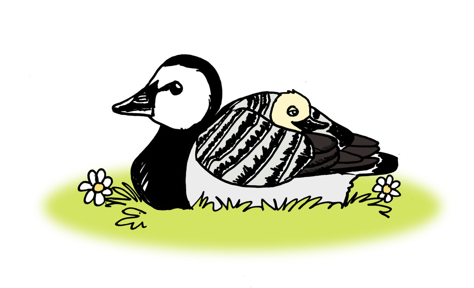 • Titta gärna på fåglarna på avstånd med kikare utan att störa dem.lastenlintuviikko-piirros-valkoposkihanhi-PetriKuhno