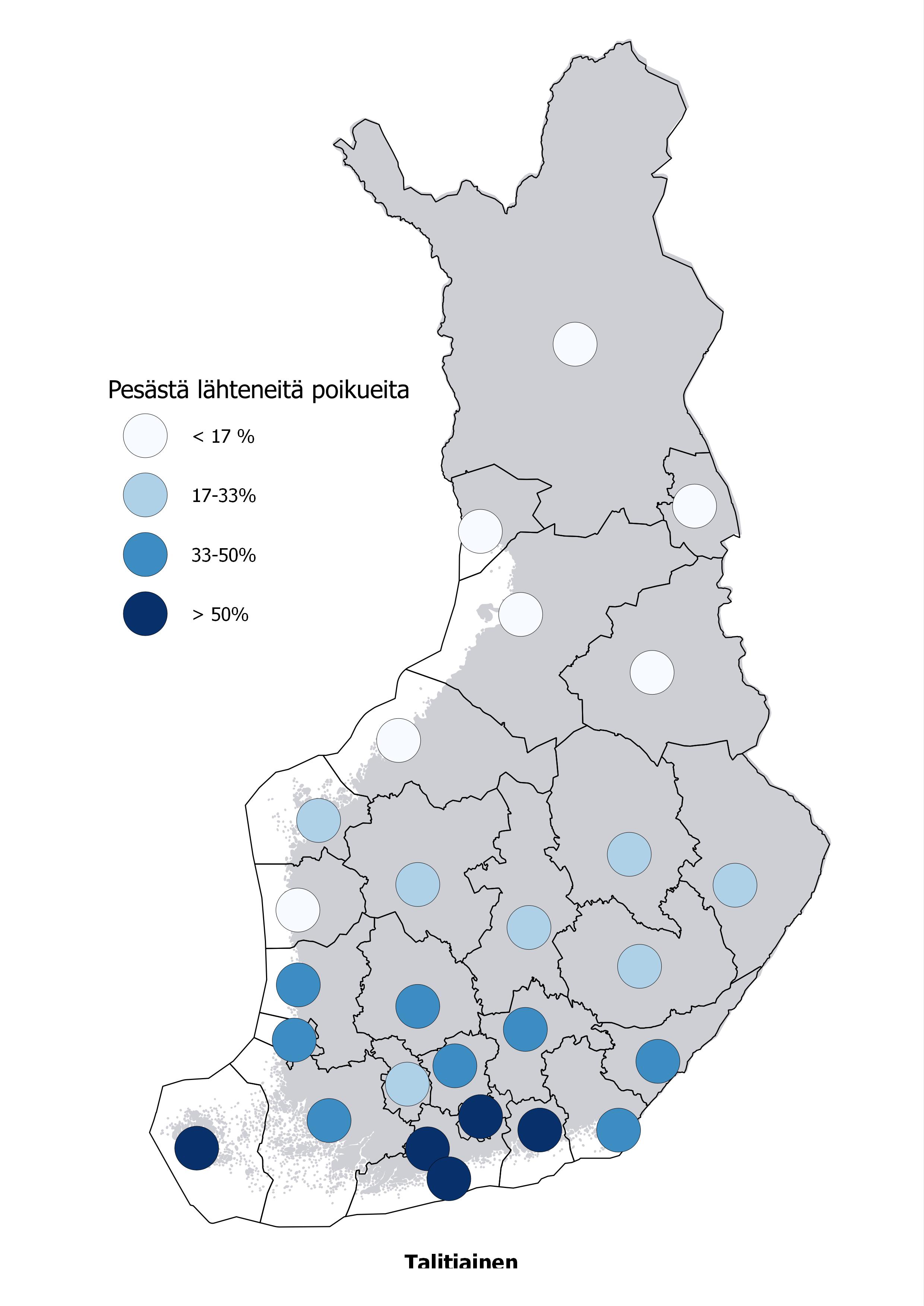 Pöntöissä todettiin yli 18 000 pesintää. Pöntöistä asuttuja oli 52 prosenttia, mikä on hieman vähemmän kuin edellisvuonna (54 %). Asuttujen pönttöjen osuus oli suurin Etelä-Suomessa ja pienin Pohjois-Suomessa.