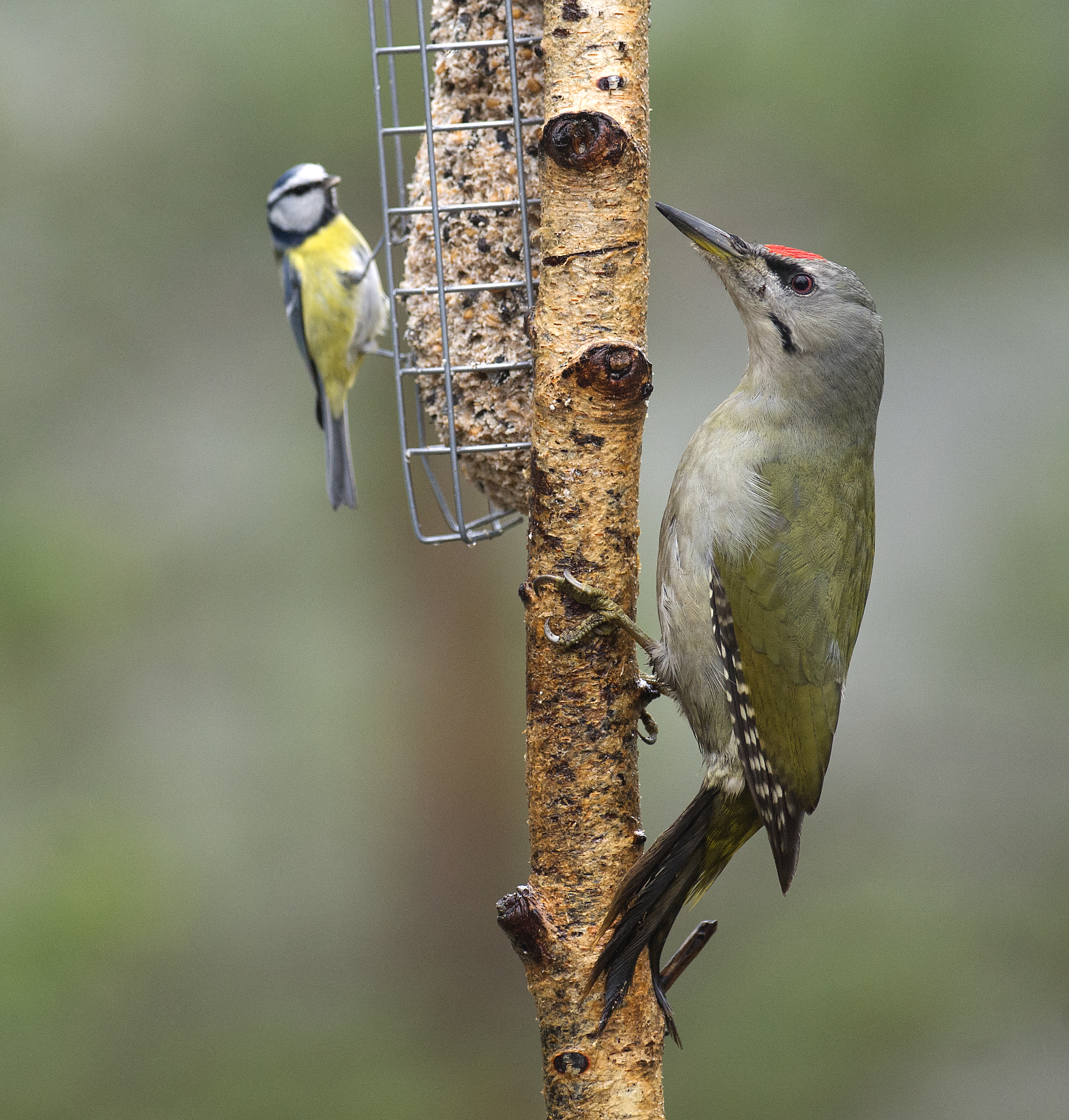Tiedotteen lintulajit ruotsiksi: gråspett (harmaapäätikka), gröngöling (vihertikka)