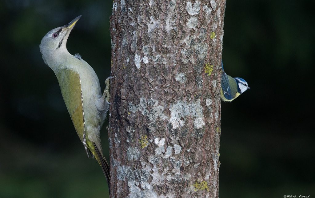 KUVA harmaapäätikasta ja sinitiaisesta, kuvaajan nimi (Jyrki Mäkelä) mainittava