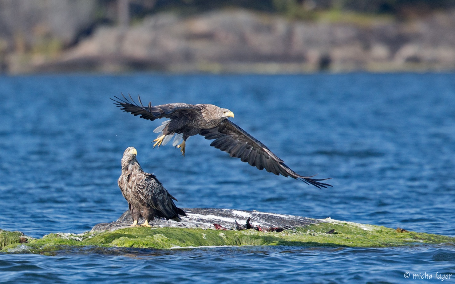 Tiedotteen lintulajit ruotsiksi: havsörn (merikotka), ejder (haahka)