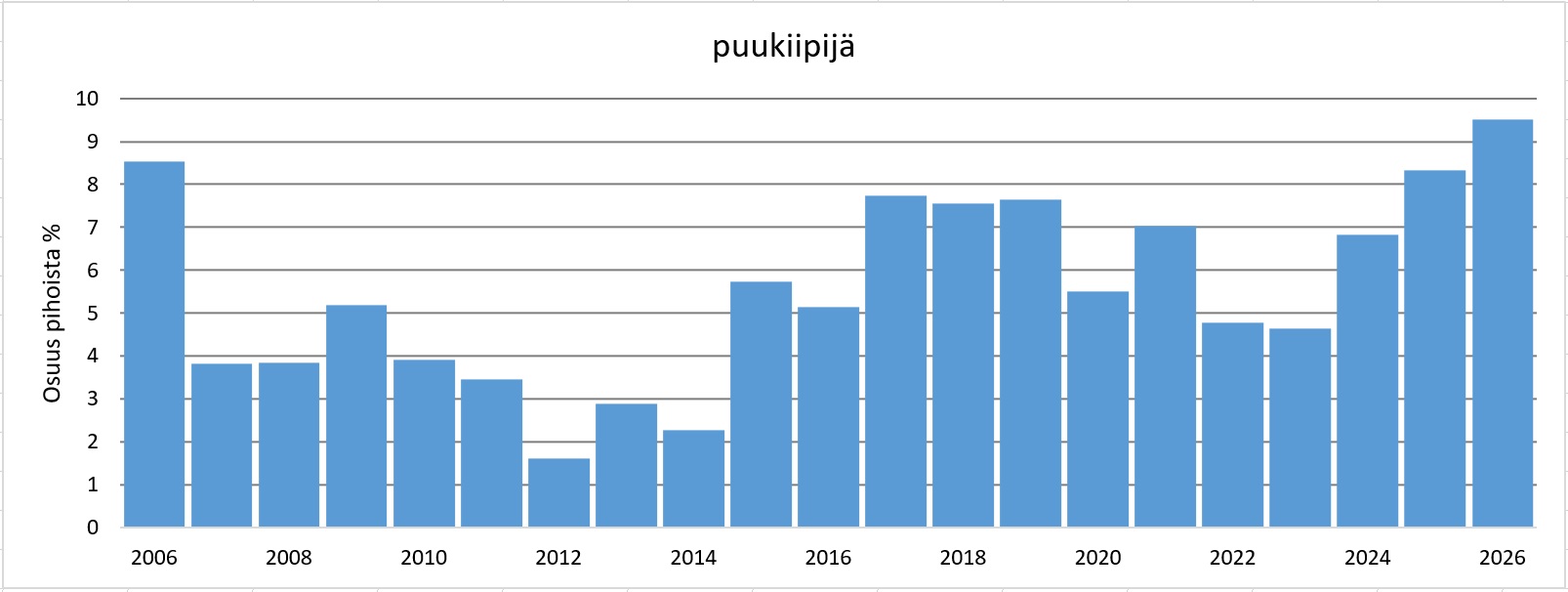 Viime viikonloppuna järjestetyssä Pihabongauksessa nähtiin runsaasti puukiipijöitä ja pyrstötiaisia. Sen sijaan urpiainen oli toista talvea peräkkäin miltei kadoksissa.